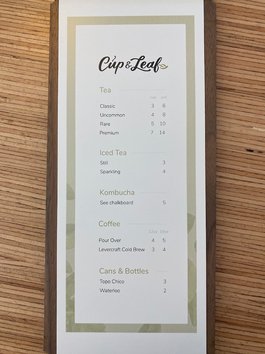 Welcome to Cup & Leaf Cafe, a hidden gem nestled in the heart of East Austin at 1700 E 2nd St Suite A. This enchanting cafe celebrates the artistry of tea, offering a sanctuary for both new and seasoned tea enthusiasts. With a robust selection that includes Classic, Uncommon, Rare, and Premium teas, Cup & Leaf is not just a cafe; it's a destination where you can embark on a flavorful journey.